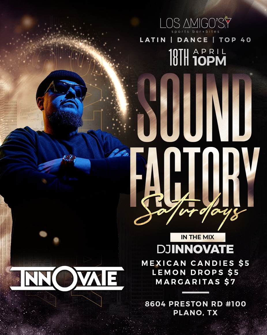 Sound Factory Saturdays is back with the vibes you’ve been waiting for. Latin, Dance, and Top 40 all night long with DJ Innovate in the mix 🎶💃🏽🕺🏽